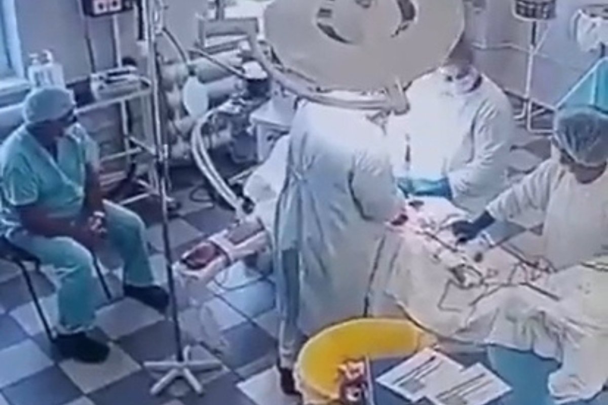 En las imágenes se observa cómo, mientras el quirófano se sacude con fuerza, los médicos permanecen concentrados, sin abandonar al paciente, hasta completar exitosamente el procedimiento.