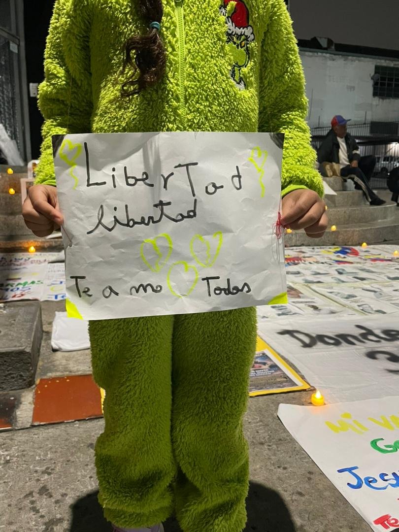 Más de dos semanas han transcurrido desde que iniciaron esta protesta, con participantes pernoctando en el lugar para demandar la libertad de sus seres queridos, luego de que el presidente de facto de la Asamblea Nacional chavista, anunciara el 8 de enero que estaban excarcelando a un número importante de venezolanos y extranjeros presos arbitrariamente.